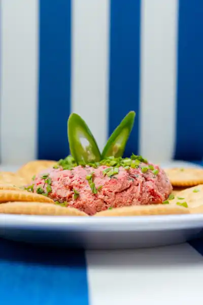 Marlín con un poco de queso crema y galletitas saladas.