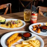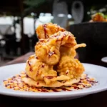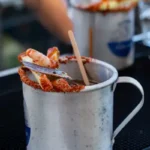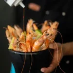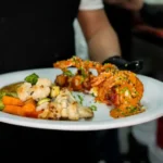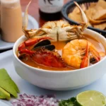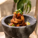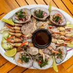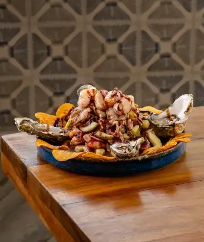 Manitas de jaiba, callo de hacha media luna al chiltepín y salsas negras.